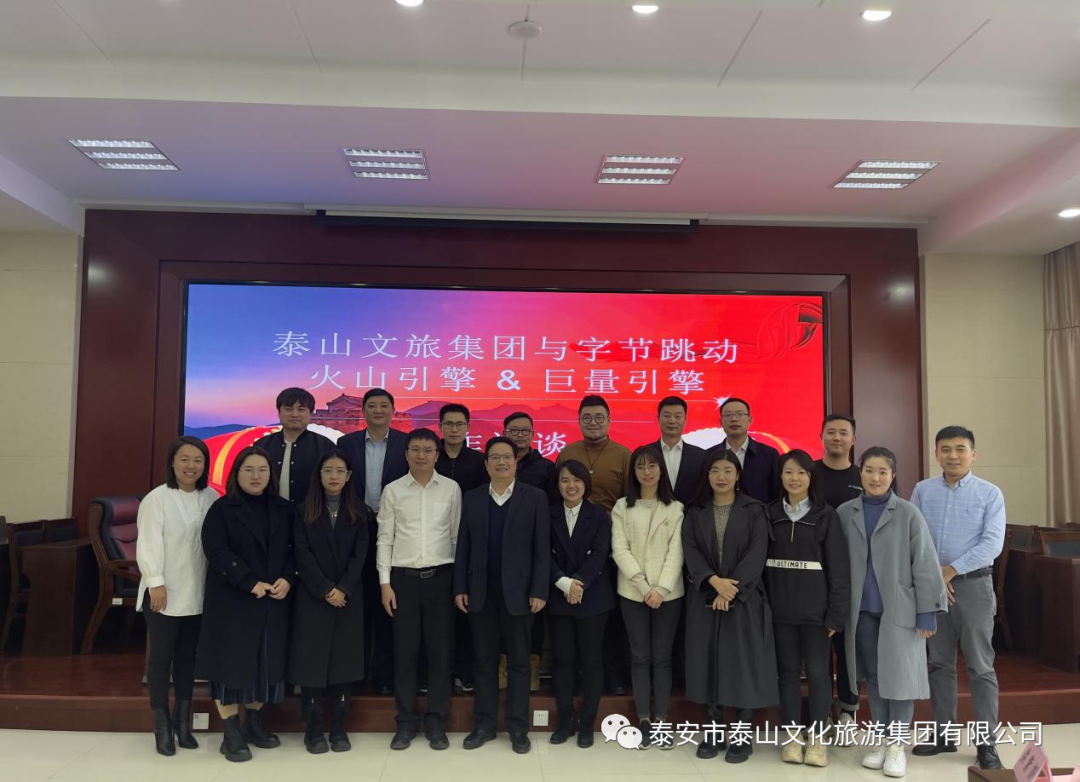 雙方就打造泰山文旅IP+產業+產品的串珠成鏈產業鏈條方案、“元泰山”搭建方案、泰山IP打造和宣傳方案、營銷平臺搭建及用戶沉淀、本地生活營銷生態等內容進行深入交流探討。最后,時貞強董事長總結講話。他指出,作為文旅企業,要有創新精神和創新活力,泰山文旅集團將進一步加強與字節跳動科技公司的合作,讓科技和數字賦能文旅,加快文旅深度融合,開創集團工作新局面。