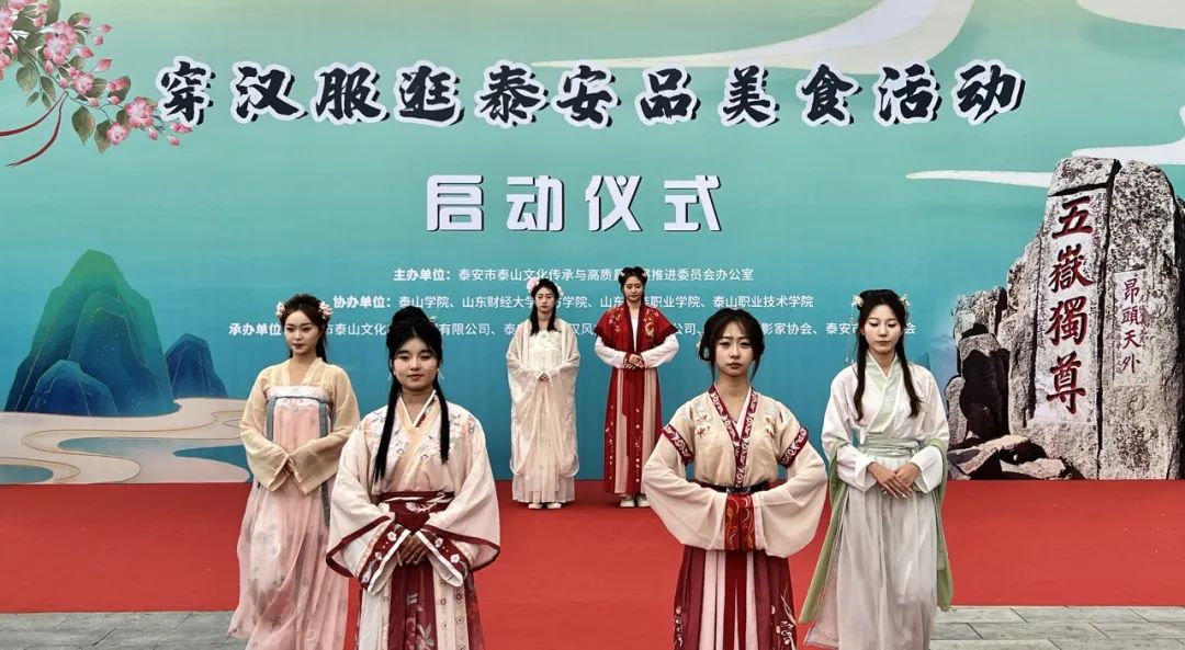 11月16日,由泰安市泰山文化傳承與高質量發展推進委員會辦公室主辦,泰山文旅集團、泰安市龍泉漢風文化傳媒有限公司、泰安市攝影家協會、泰安市漢服協會承辦,泰山學院、山東財經大學東方學院、山東服裝職業學院、泰山職業技術學院協辦的“穿著漢服逛泰安品美食”活動在紅門廣場成功舉辦,200余名駐泰高校的漢服愛好者齊聚一堂。