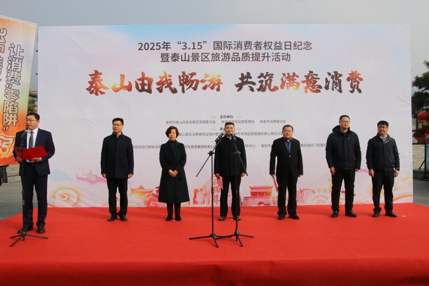 為迎接第43個“3·15”國際消費者權益日,3月11日,泰山景區(qū)“3·15”國際消費者權益日紀念暨泰山景區(qū)旅游品質(zhì)提升活動在紅門游客中心廣場舉行,此次活動旨在進一步營造安全放心、公平誠信的消費環(huán)境,助力景區(qū)高質(zhì)量發(fā)展。